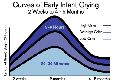 Peak of crying: 한번 울면 몇 시간씩 내리 울고, 저녁이나 새벽에 운다. 기운차에 우는 아이 중에 건강하지 않은 아이는 거의 없다. 대신에 아이의 수유, 잠, 배변 패턴을 잘 체크를 해야한다. 그리고 이것이 이상하면 병원에 가보자.