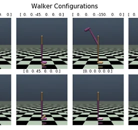 Let's find out what Walker2d is. State (17dim) def _get_obs(self):qpos = self.sim.data.qposqvel = self.sim.data.qvel return np.concatenate([qpos[1:], np.clip(qvel, -10, 10)]).ravel() qpos: [x, y, angle, ?, ?, ?, ?, ?, ?]qvel: velocity of [x, y, angle, ?, ?, ?, ?, ?, ?]observation: [y, angle, ?, ?, ?, ?, ?, ?, xvel, yvel, angleVel, ?, ?, ?, ?, ?, ?] Action (6dim)
